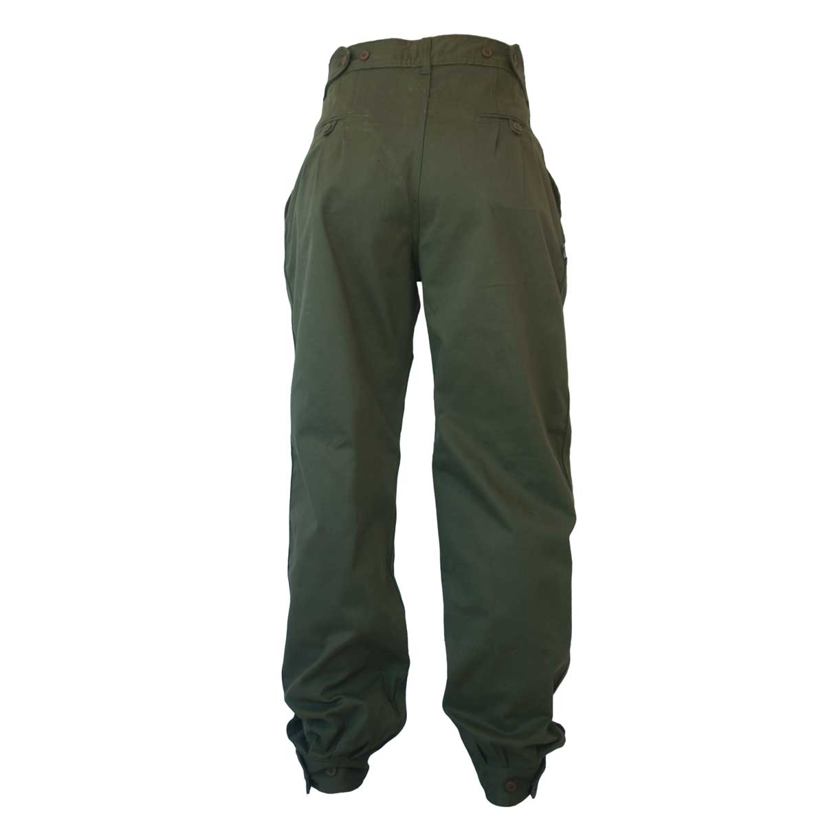 Bombachas clásicas de campo, tela «Gabardina» en sarga 3 x 1, excelente calidad en 8 oz., algodón 100 %, con proceso de sanforizado (mínimo encogimiento) tela “homologada”, procedencia Vicunha, de excelente calidad, teñidos reactivos, con colores solidos al lavado y a la luz, tonos a designar. Costuras reforzadas. Los talles comunes de los pantalones son del 38 al 60 , talles especiales (62 al 68) estos últimos llevan un recargo del 30%.